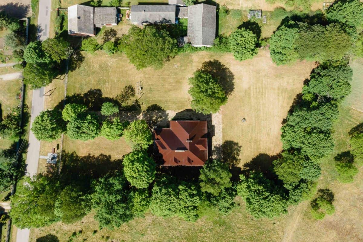 Nieruchomość położona jest na dużej, 5300 m² działce, która otoczona jest bujną zielenią. Przestronny teren wokół budynku zapewnia wiele możliwości zagospodarowania, od przestrzeni rekreacyjnej po dodatkowe budynki użytkowe. Teren jest częściowo zadrzewiony, co tworzy przyjemny, naturalny klimat, sprzyjający wypoczynkowi na świeżym powietrzu. Przestronny trawnik przed budynkiem idealnie nadaje się na ogród, plac zabaw lub miejsce na rodzinne pikniki.