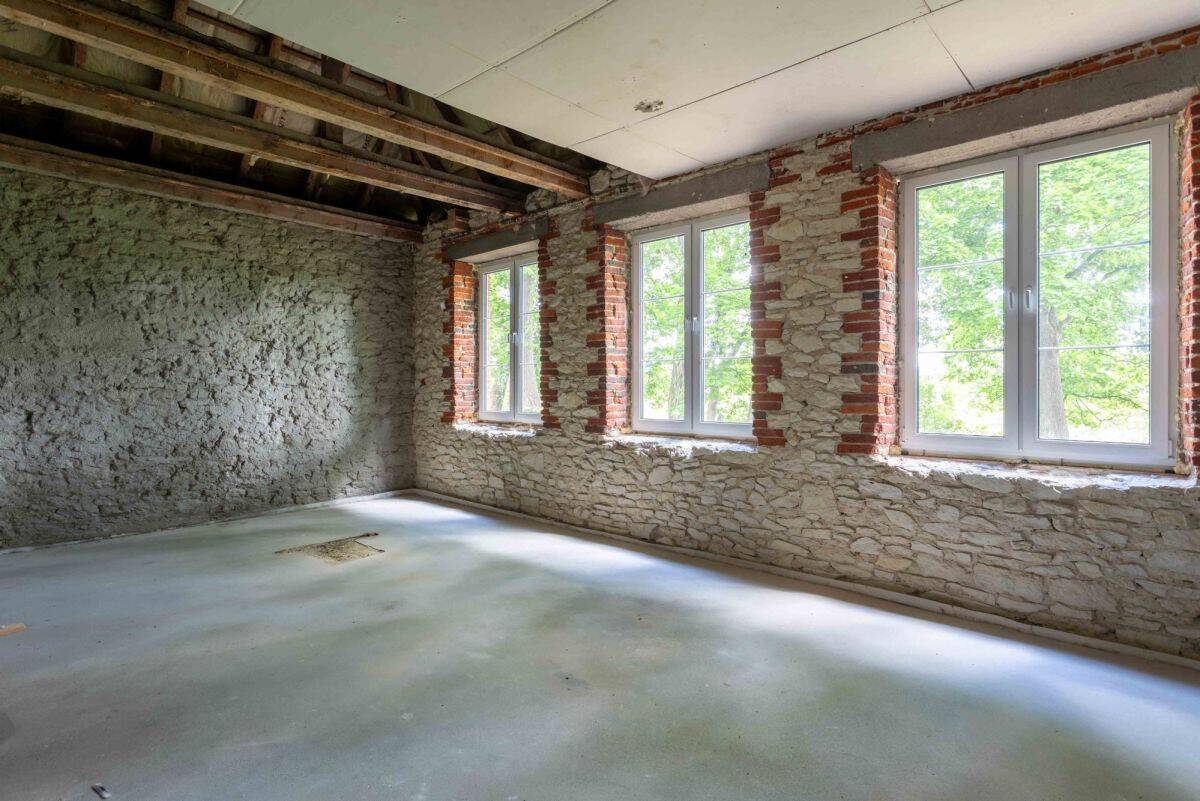Przeprowadzona modernizacja obejmowała wymianę okien i wykonano nowe wylewki betonowe na podłogach. Budynek wymaga jednak dalszych prac budowlanych i zachęcamy przed zakupem konsultację z własnymi ekspertami, by ocenić zarówno obecny stan techniczny jak i zakres koniecznych dalszych prac.
