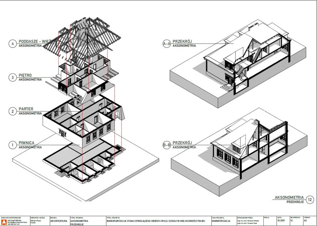 Biuro projektowe Archiwytwórnia przeprowadziło szczegółową inwentaryzację stanu istniejącego obiektu oraz przygotowało dokumentację techniczną i koncepcję aranżacji.