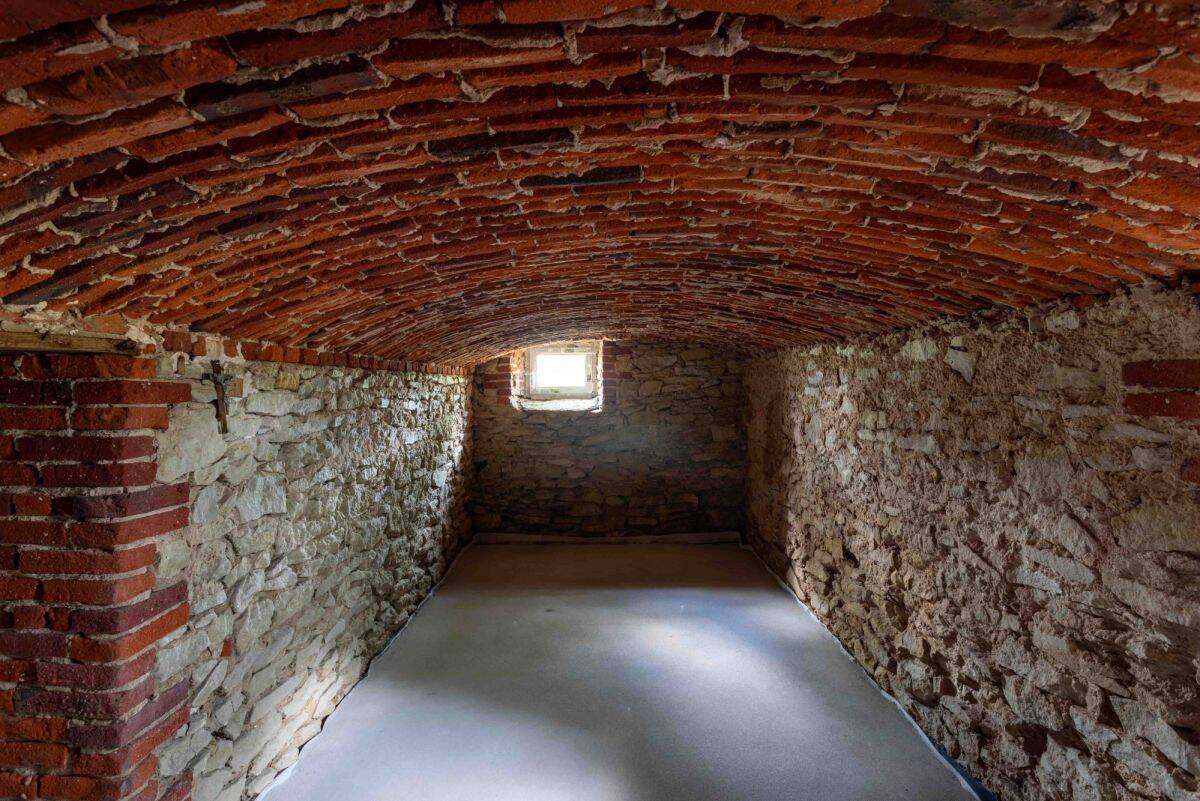 75 m2 częściowo otwartej powierzchni pod łukowym, ceglanym sklepieniem z niewielkimi oknami zapewniającymi dopływ naturalnego światła.